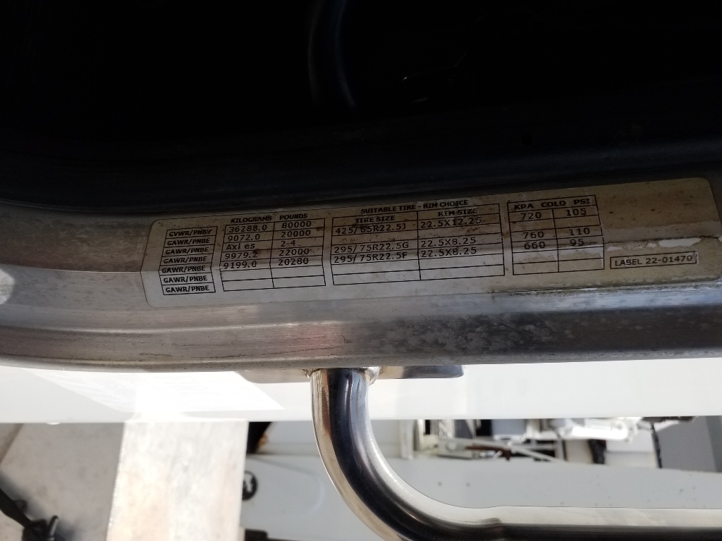 | FRONT TIRES: 425/65/22.5 | REAR TIRES: 295/75/22.5 | ||