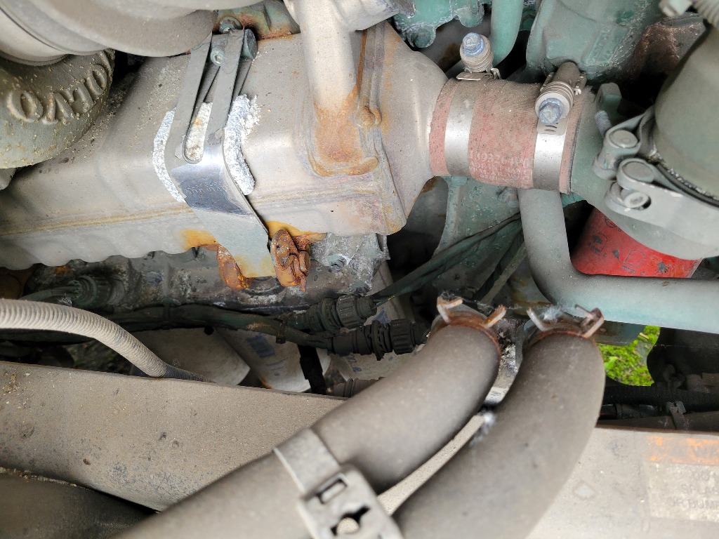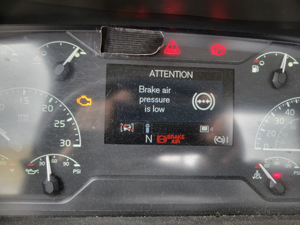 | Air leaking. Unable to build enough pressure to release brakes or operate air horn or other air operated systems. Visor marker lights are inoperable. Active Aftertreatment system faults detected. Oil seepage at oil fill tube connection to oil pan and some oil buildup at front of oil pan. | |