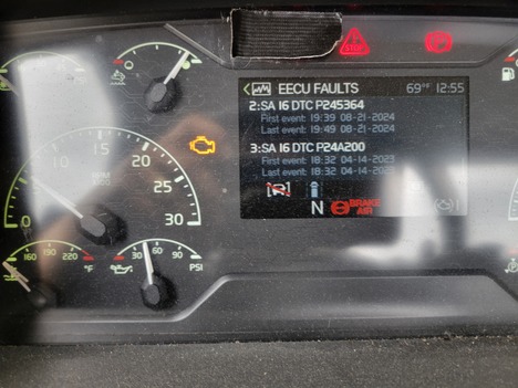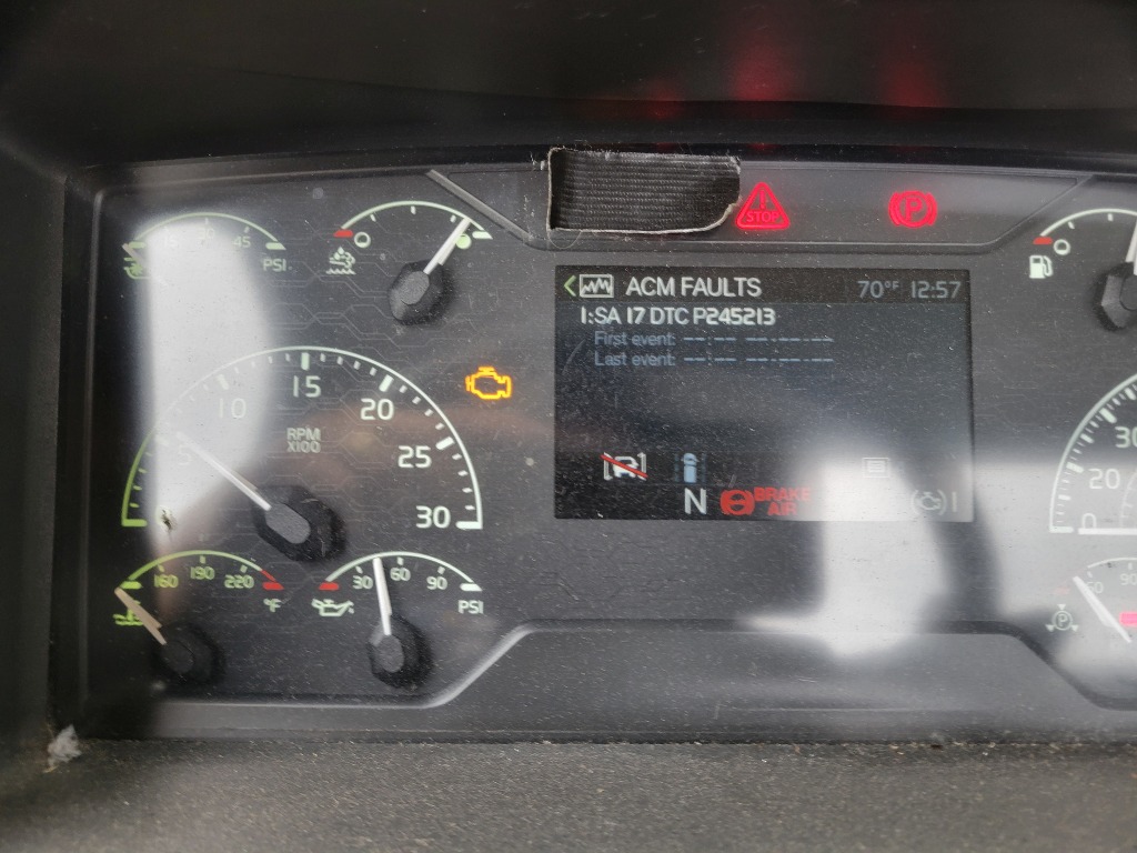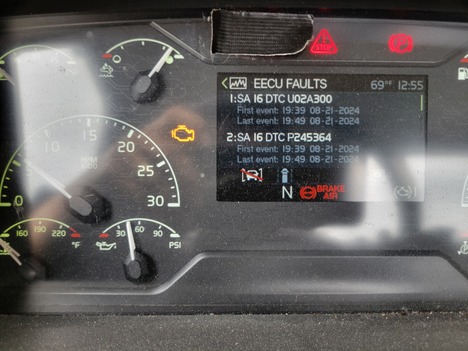 | DIAGNOSTICS | ENGINE AND CHECK LIGHTS ARE ON. ACTIVE FAULTS: U02A300, P245364, P24A200, SA 11 SPN 639 FMI 2, MID 140 PSID 211 FMI 9, MID 144 PSID 247 FMI 14, P245213 |