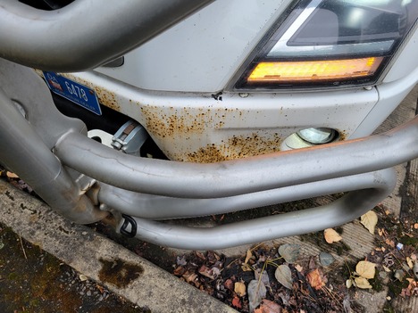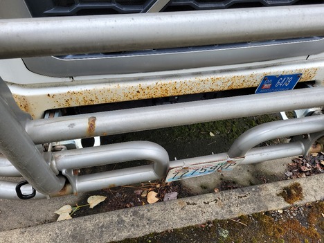 | BUMPER | VARIOUS PAINT CHIPS AND RUST FORMING |