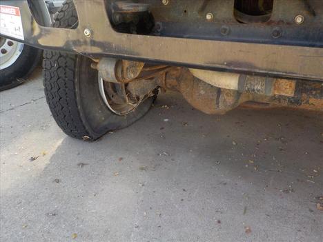 | steer tires flat off rim both sides |