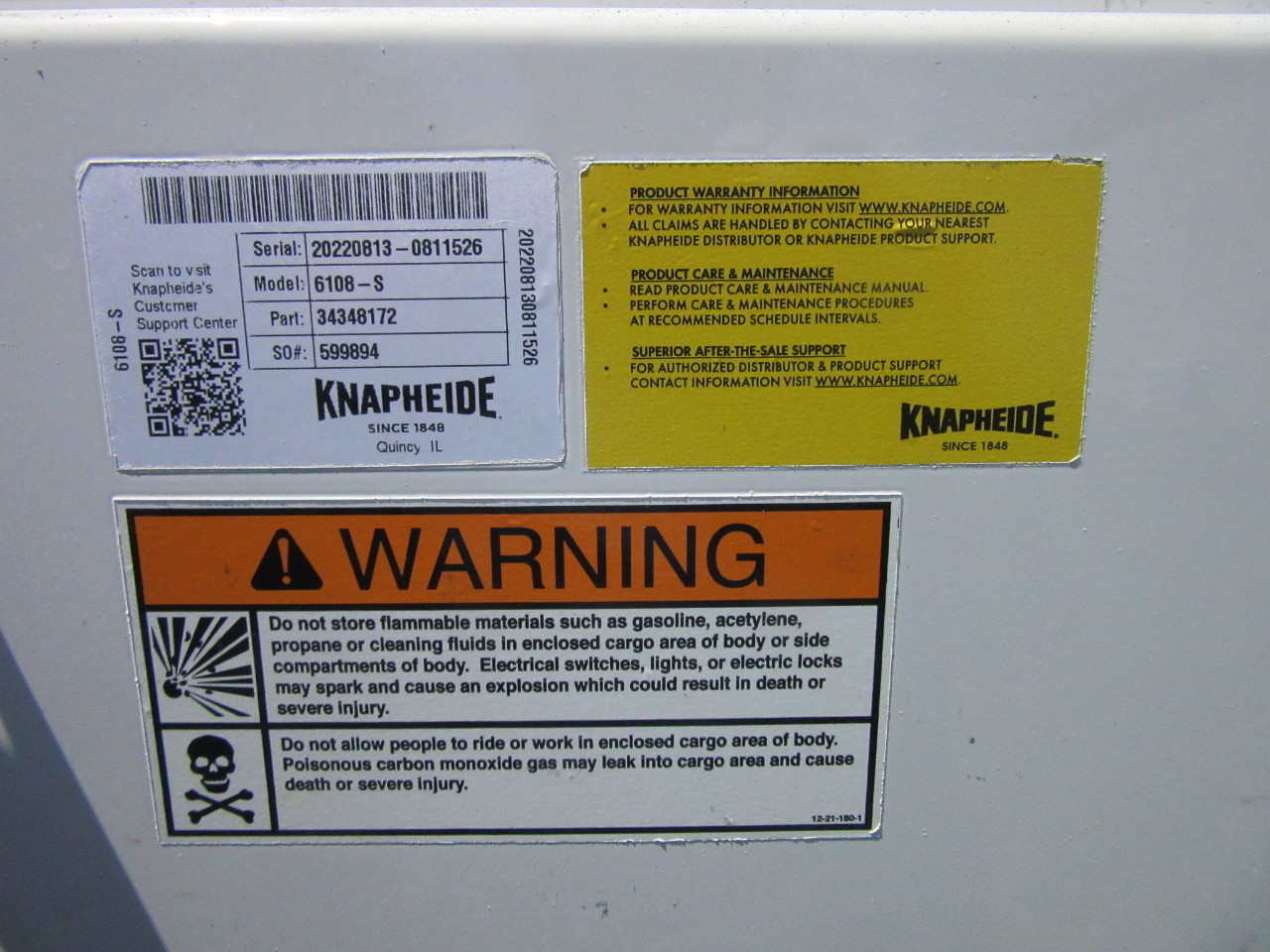 | KNAPHEIDE 6108 s UTILITY BOX EXTERIOR 108X77X41 INTERIOR 48X112X43 COMPARTMENTS 2 36X36X12 2-25X36X12 2 44X16X12 |