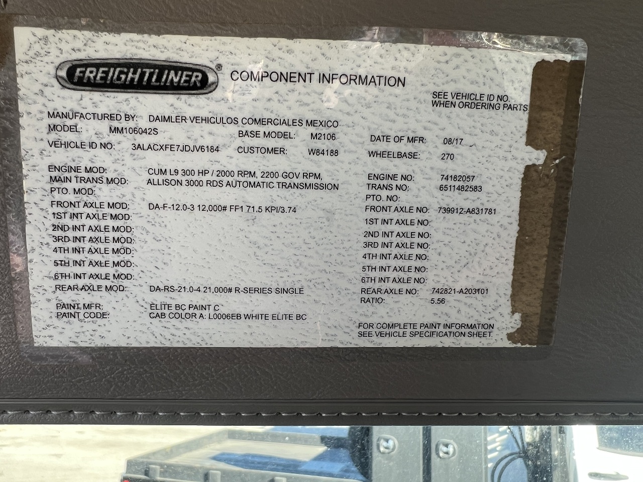 | Transmission | ALLISON 3000 RDS 6 SPD AUTO |