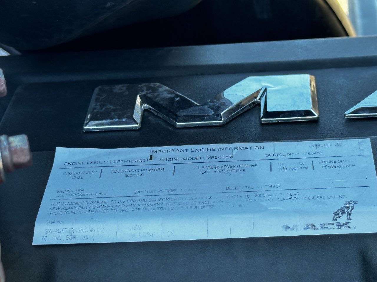 | Engine | MACK MP8 12.8L 505 HP |