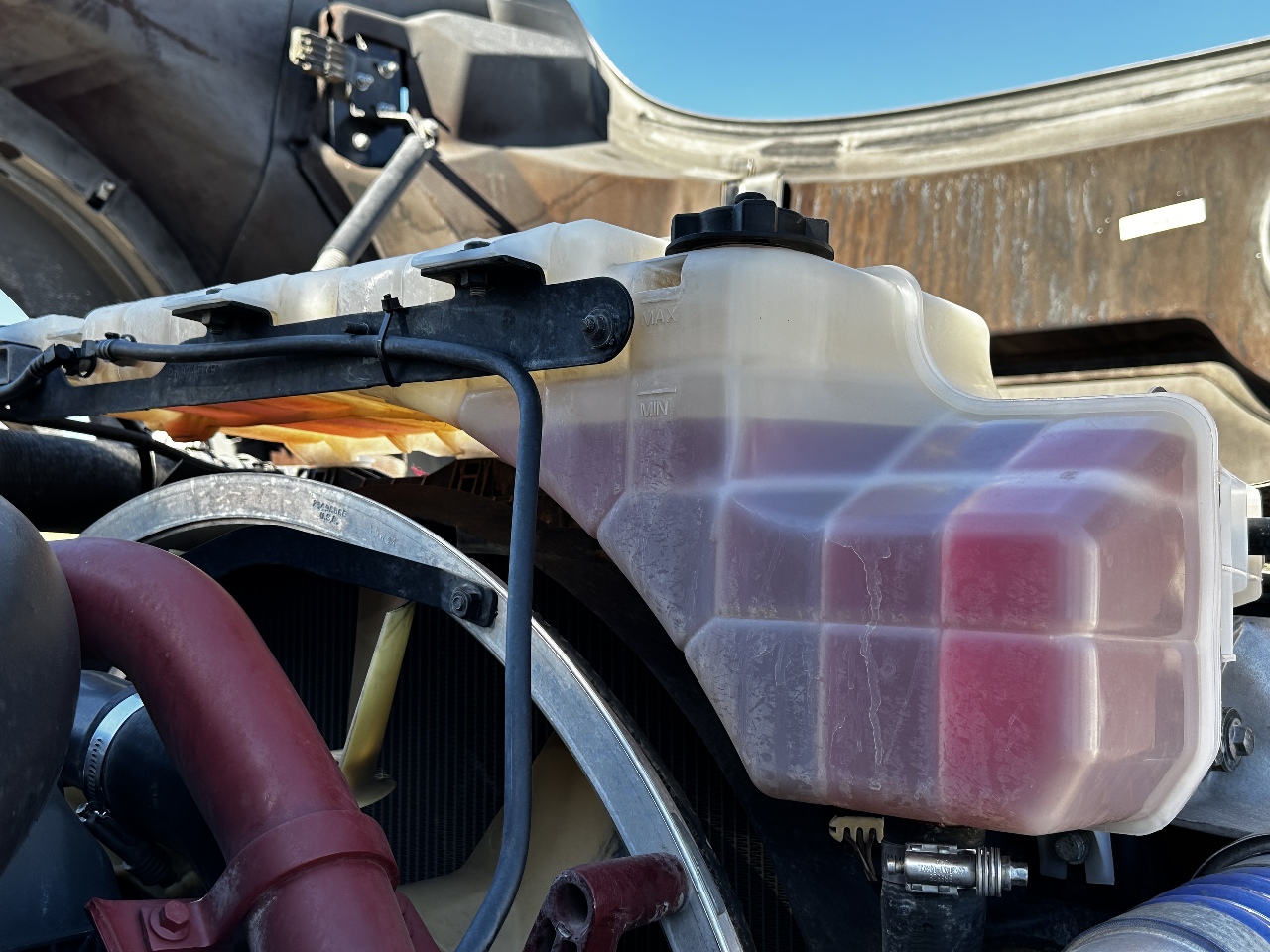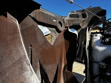 | HOOD | DRIVER SIDE STEER AXLE FENDER CRACKED/BROKEN AND HEAT SHIELD UNDER HOOD IS RUSTING |