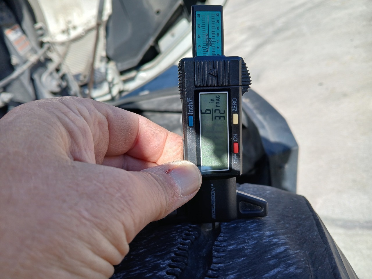 | TIRES | 1 MEASURE BELOW 10/32" |